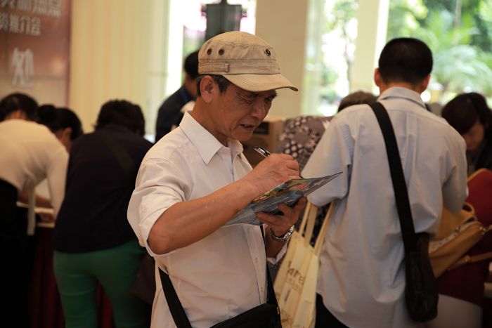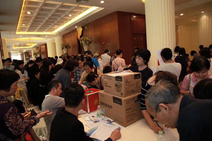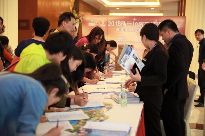 活动现场熙熙攘攘,人潮涌动,五百多位广州市民将签到处围得水泄不通,争相领取楼盘介绍资料和填写4月17日的中山考察团报名表,宴会厅内的君悦项目沙盘也围满了咨询的市民,向销售人员详细了解项目情况。据悉,活动当天的参加者基本为广州本地市民,大部分是广发银行的百万存款级VIP客户,极具投资意愿和置业实力,另有一部分是广东电视台房产频道的忠实观众和肥妈粉丝。