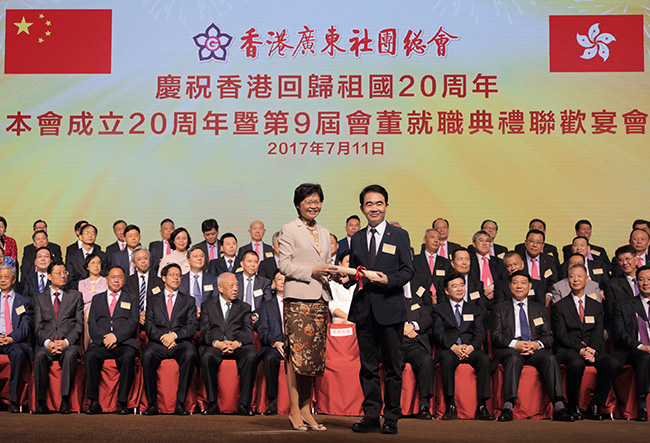 7月11日,香港广东社团总会成立20周年暨第九届会董就职典礼在香港会议展览中心举行。