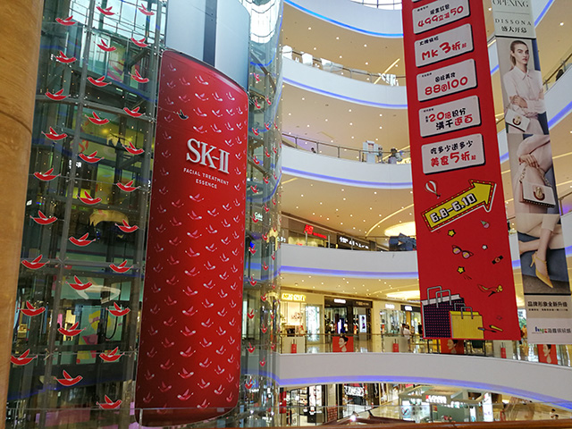 虽然受台风天暴雨影响,年中庆首日客流及销售都未达预期,但传播覆盖广泛的年中庆宣传以及88团100元美妆券、银联支付499减100、微信支付499减50、满额送、美食半价等一系列实质性的优惠活动极大地刺激消费者购买欲。年中庆后两日,客流车流及销售都呈现迅猛增长,车流同比增长超40%,销售同比翻一番。