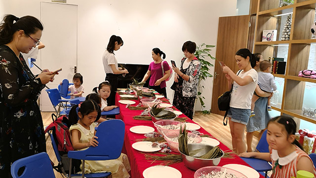 6月16日下午,在海雅缤纷广场7F客服中心VIP室,工作人员早已准备好包粽子所需的材料,静静等候家长和孩子们的到来。不到活动开始时间就已经有很多报名的家长带着小朋友来到活动现场,一看到新鲜干净的粽子材料都忍不住跃跃欲试。
