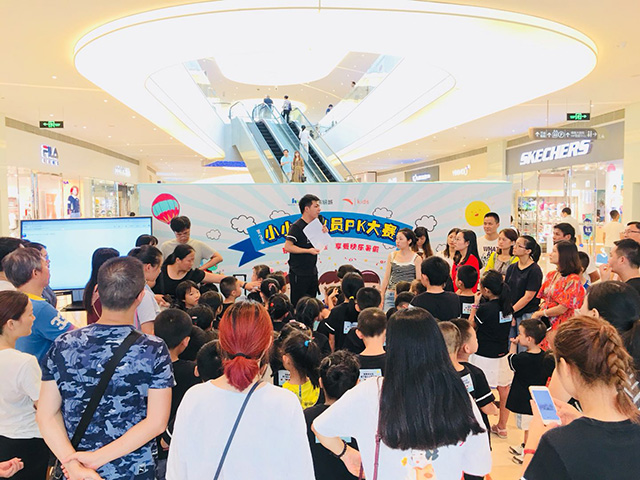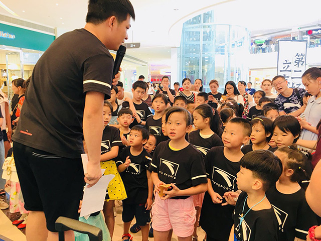 活动开始前安踏Kids为小朋友们配发了“小小营业员”的统一服装,主持人先简单地讲述了“小小营业员”的活动规则并抽签分配店铺。活动开始后,小朋友们到各自店铺就位,店员给小朋友们提供指导和培训,带小朋友们熟悉店铺商品,融入氛围。刚开始小朋友们有些胆怯地站在自己负责的店铺门前,见到有顾客走进店却不敢上前招呼,但经过爸妈和销售员在旁边的一直鼓励,他们都勇敢迈出了第一步,默默地为自己的小小“事业”而加油。