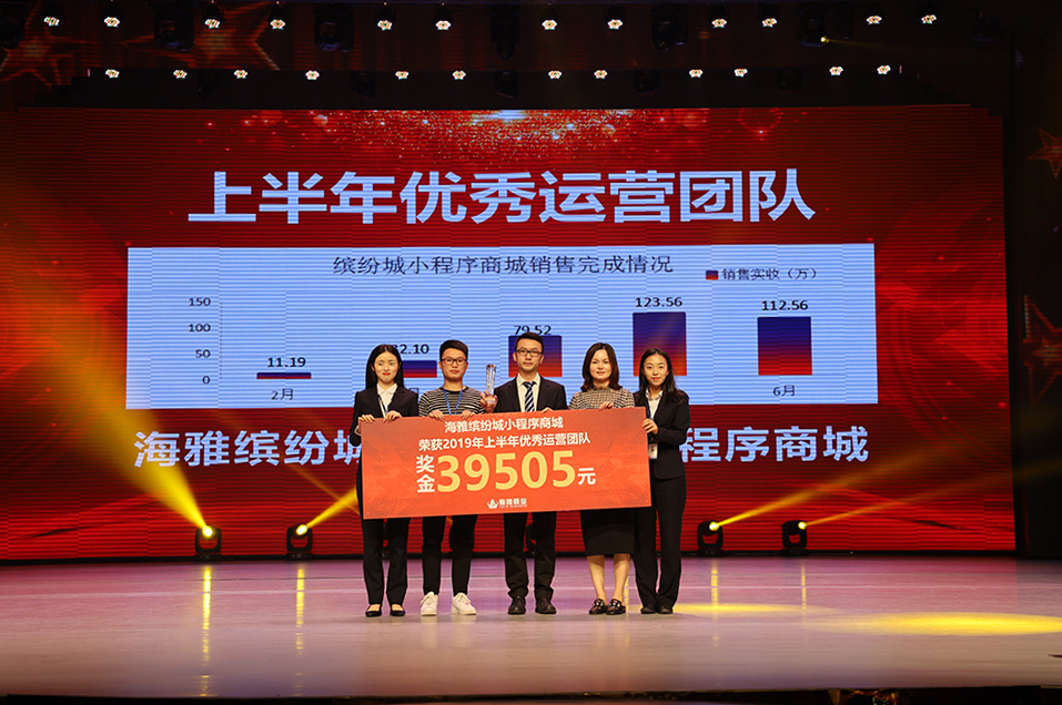 2019年上半年,海雅商业各项目团队经过不断努力与提升,在楼层销售、品牌招商、小程序运营等各方面均取得了优异的成绩。为表彰先进,激励员工,8月8日下午,商业公司在海雅大剧院隆重举行了2019年上半年优秀团队颁奖典礼。