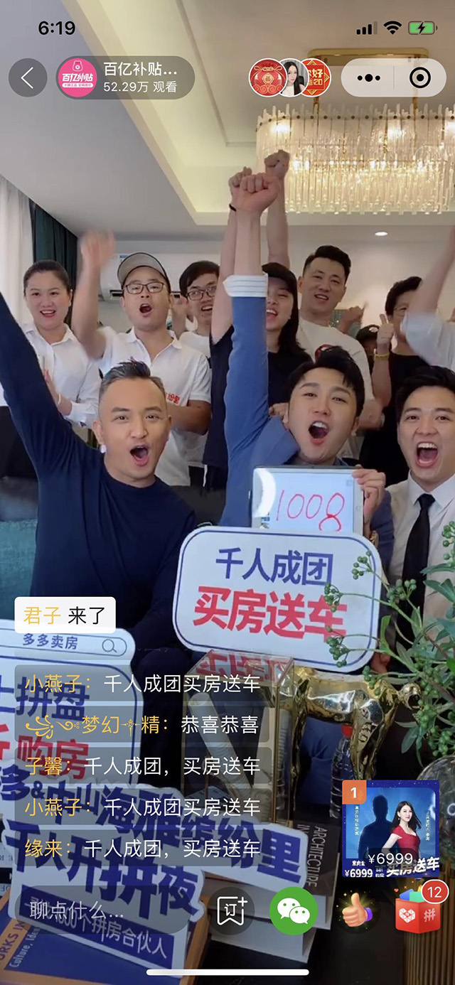 7月13日晚间,深圳海雅集团旗下的中山海雅缤纷城进驻拼多多,在平台“百亿补贴”与“限时秒杀”两大核心频道试水直播卖房。本次直播拼房活动邀请了浙江卫视著名主持人华少强势助阵、深广电当红主持人楚乔和广东电视台知名主持人伍萨子且同台带货。