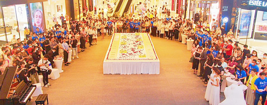 启动仪式最好一个环节“庆宝”,领导们切下7米长,21平方大的蛋糕,派发给现场来宾及来往顾客,将庆典现场气氛带入最高潮,共祝海雅缤纷城生日快乐,7周年大麦!