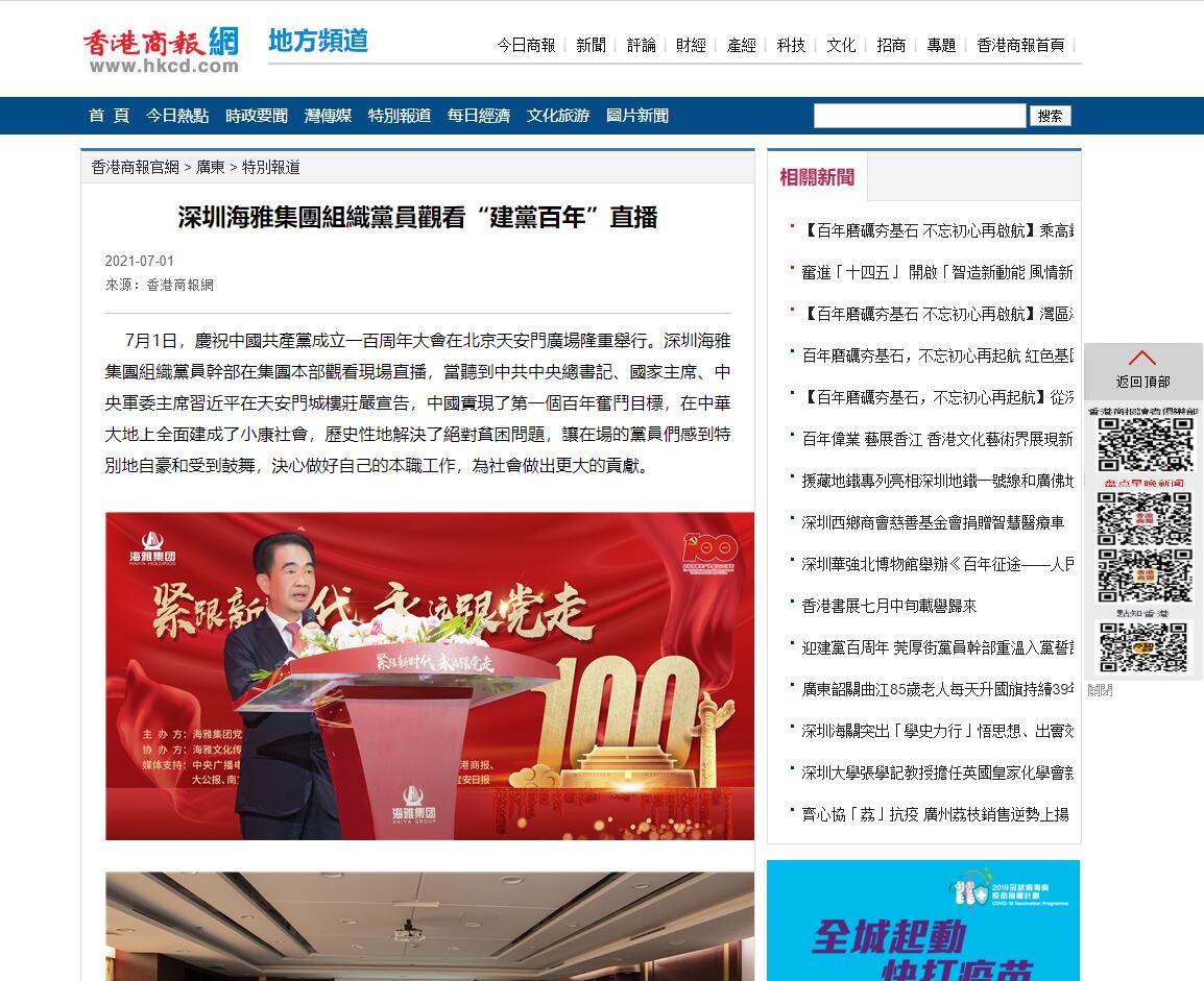 香港商报 | 深圳海雅集團組織黨員觀看“建黨百年”直播