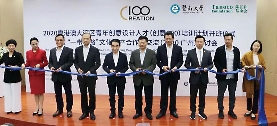 涂辉龙(左五)出席暨南大学举办的2020粤港澳大湾区青年创意设计人才培训计划,寄语三地青年增进交流合作,用艺术提升社会的创新能力。