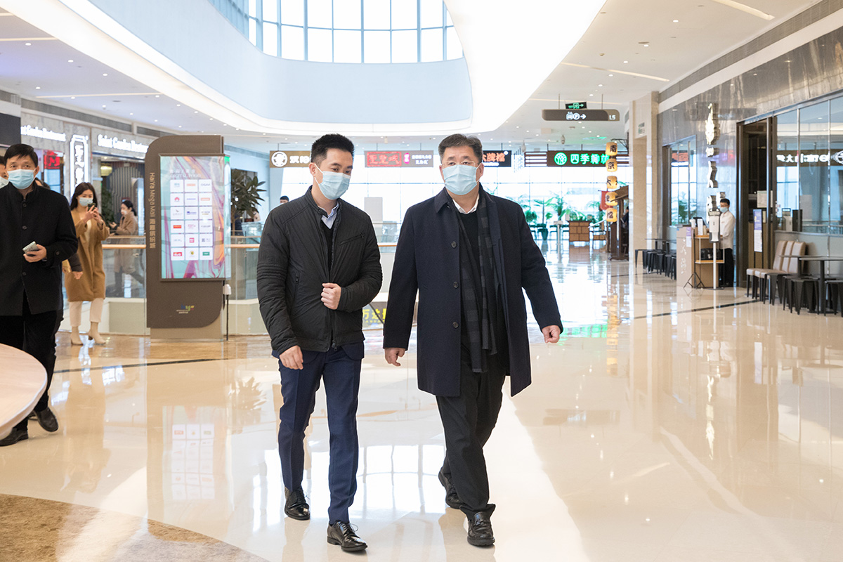 集团执行总裁涂尔帆(图左)与吴德副局长(图右)一行参观海雅缤纷城