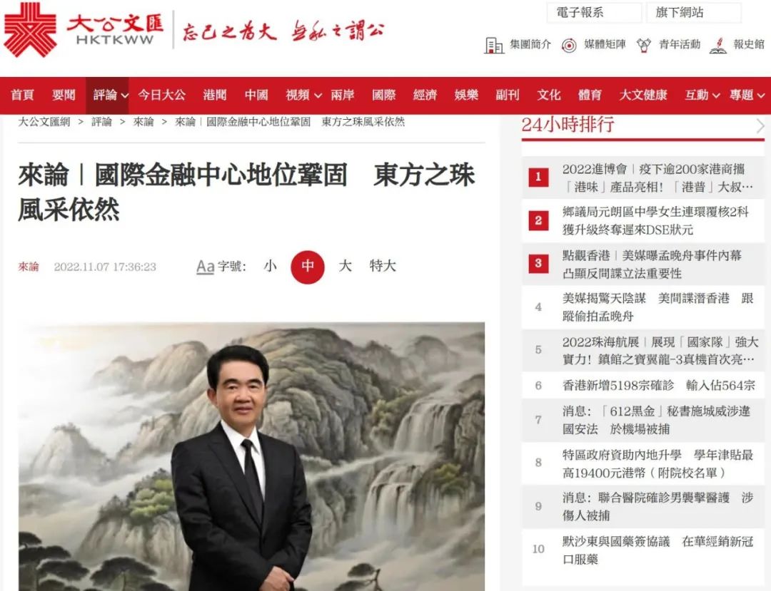 香港金融科技周、国际金融领袖投资峰会近日在香港举行。全国政协委员、香港各界文化促进会主席、海雅集团董事局主席涂辉龙博士撰文指出:伴随香港以实际行动重回国际舞台,国际金融中心的地位不断巩固提升,也向全世界展示了历经风雨后的香港,在“一国两制”的优势下,风采依然、未来可期。乘着祖国繁荣发展的浩荡东风,在融入国家发展的过程中,香港一定能够把握机遇,为实现中华民族伟大复兴,发挥更大作用、作出更大贡献。