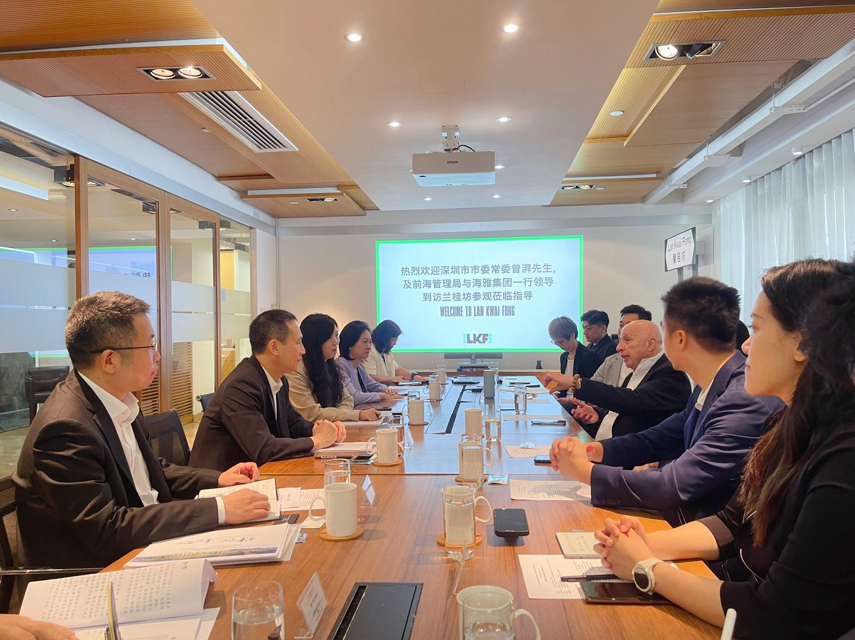 盛智文主席盛赞前海改革开放和国际化城市新中心建设成就,非常看好粤港澳大湾区尤其是前海世界级商圈的发展潜力,希望能到前海拓展商机。盛主席表达了对海雅兰桂坊项目在前海落地的强烈期待,以及对共同构建一个具有特色、国际化的生活圈的殷切希望。并表示,期待通过兰桂坊集团在设计、营销和品牌建设方面的专业能力,结合海雅集团在开发和经营方面的卓越实力,在前海打造精品项目。