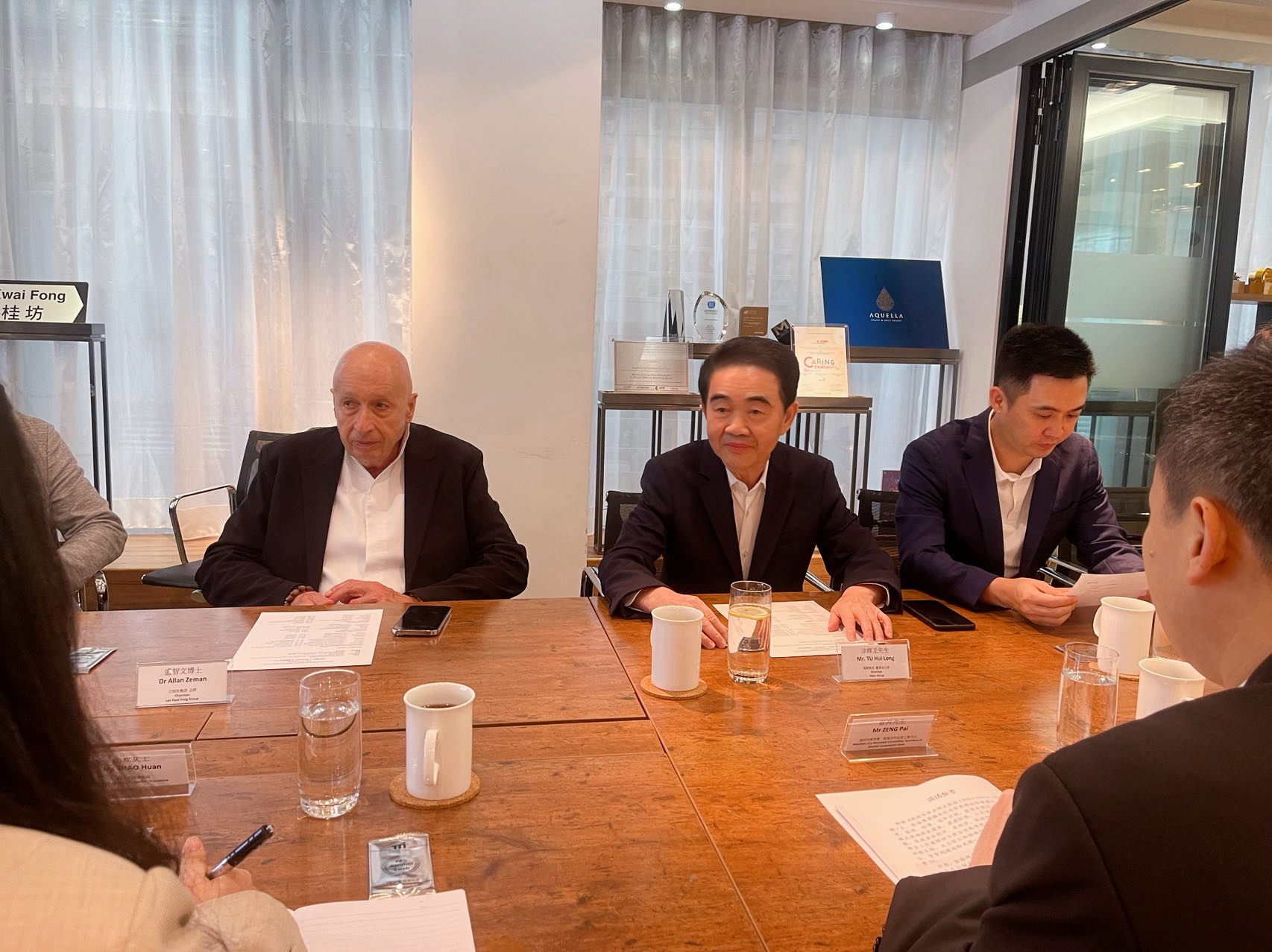 6月13日上午,深圳市委常委、前海管理局局长曾湃一行在香港与海雅集团董事局主席涂辉龙、兰桂坊集团董事局主席盛智文进行座谈。前海管理局副局长袁富勇、文娉,海雅集团执行总裁涂尔帆、兰桂坊集团首席运营官章竣齐等参加活动。