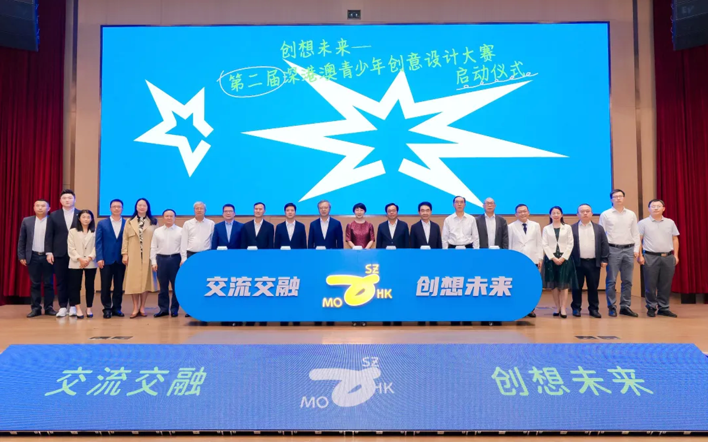 在启动仪式上,深圳市教育局局长郑秀玉、香港特别行政区教育局局长蔡若莲、澳门特别行政区教育及青年发展局局长龚志明分别以视频的方式发表了致辞。深圳市教育局局长郑秀玉在致辞中说,创新是深圳的根,深圳的魂。青少年身处日新月异的新时代,更应该明白创意创新的重要性,努力提高自身的创造能力。深港澳青少年创意设计大赛,不仅提升了参与者的创意创新能力,而且增进了三地青少年的交往交流、交心交融,非常值得参与。蔡若莲局长在致辞中表示,第二届青创大赛以“交流交融、创想未来”为主题,鼓励深港澳三地青少年,结合创意及当地文化风俗,描绘大湾区未来的宏伟景象,非常有意义,呼吁广大青少年千万不要错过这个发挥创意的大好机会,用作品展示大湾区人文精神的内涵。龚志明局长则在致辞中表示,首届青创大赛让深港澳三地青少年结合创意及三地文化传统,描绘大湾区未来的宏伟景象,意义重大,得到澳门青少年学生的踊跃参与。希望第二届的青创大赛能继续成为三地青少年发挥创意、一展所长的平台,促进三地青少年交流,凝聚青春力量,丰富粤港澳大湾区的人文内涵,推动三地创意产业协同发展。深圳市委宣传部副部长刘文斌在致辞中表示,本届大赛将持续激发深港澳青少年创新创意的激情与灵感,培育三地青少年文化才俊,为大湾区文化创意产业发展培育新生力量。相信大赛将鼓励三地青少年以自己的创新与巧思,探索解决身边和城市面临的问题,点亮美好生活;鼓励他们把目光投向科技创新、人文艺术、数字社会、可持续发展等更广泛的领域,拓展思维与视野;鼓励他们以创意设计描绘大湾区未来的宏伟景象,共同建设美丽家园。值得一提的是,由深圳市育才二中、香港仁济医院靓次伯纪念中学、澳门培华中学的三位同学一起朗诵的开场白,充分体现了三地青少年在创新创意的路上携手奋进的昂扬姿态,同时也展现了三地青少年的奕奕风采。此外,童声合唱《奔跑吧,湾区少年》、创意舞蹈《we are all made of stars》,以及机器人和无人机表演,均让人耳目一新,为现场的观众呈现了一台别开生面、充满想象力的创意盛会。第二届深港澳青少年创意设计大赛以创意为桥梁,旨在推动深港澳青少年广泛交往、全面交流、深度交融,实现以赛促学、以赛促教、以赛促建、以赛促融的目的,提高深圳文化创意设计产业的影响力,激发深港澳三地文化创意的活力,彰显粤港澳大湾区文化IP魅力,以创新的理念助推深港澳三地文化和经济的发展。