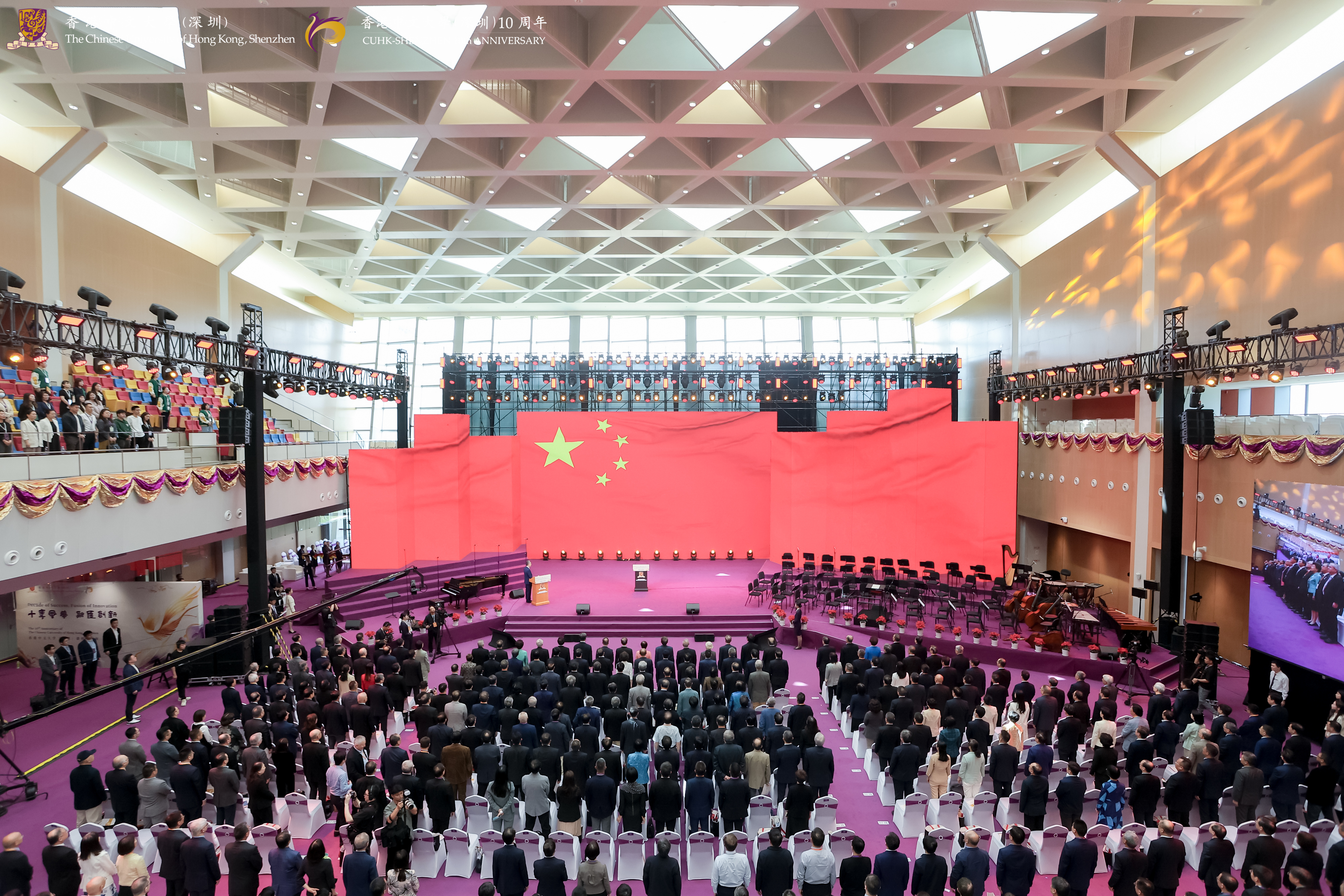 十年风华,融汇创新!在10年砥砺奋进的历程中,香港中文大学(深圳)以“一腔热血,百年大学,千载品牌,万世良心”的创校精神,传承了香港中文大学优良的办学理念和学术体系,“结合传统与现代,融会中国与西方”,发挥“一国两制”和“双区建设”优势,成为粤港澳大湾区融合发展教育、深港合作办学培养创新人才的成功典范。与祖国发展同频,与时代发展共振,成长中的香港中文大学(深圳)将继续扎根深圳,面向世界,发挥香港“一国两制”和深圳“双区建设”的独特优势,主动担当自主培养国际化高层次人才的重任,为国家的高等教育改革创新探索成功之路,积极参与粤港澳大湾区的教育和科技创新,助力湾区打造成为创新人才培养高地,国际创科中心。