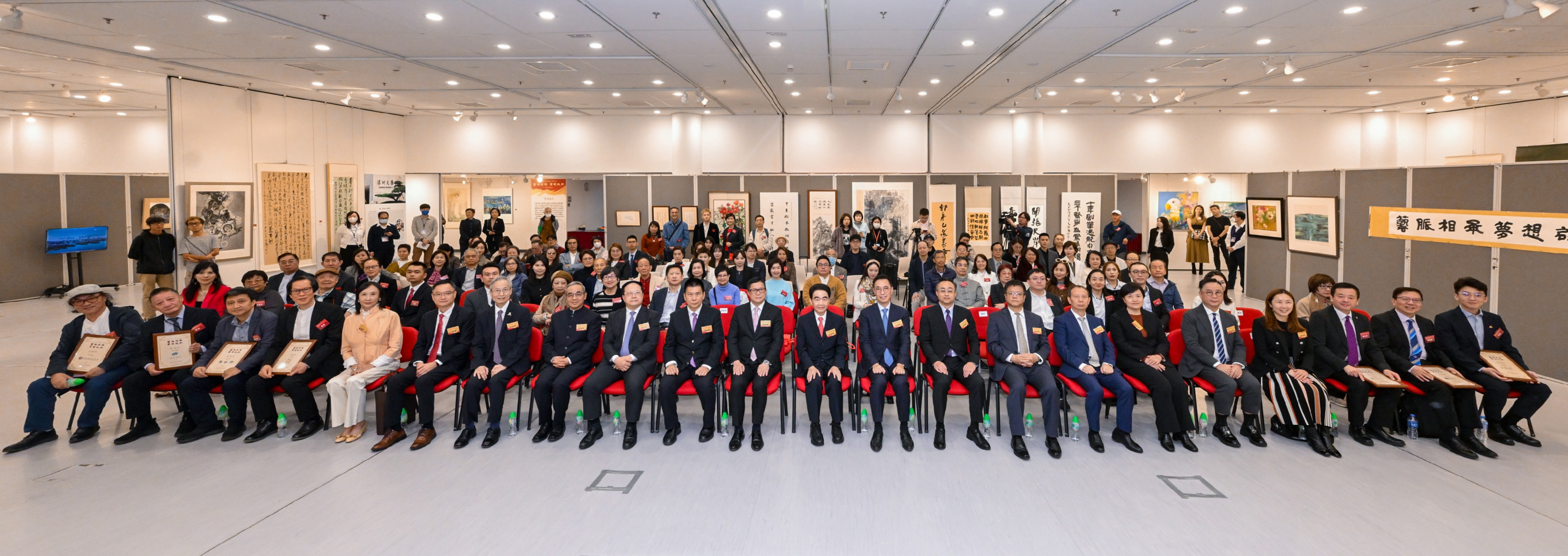 展览开幕式高朋满座、精英荟萃。全国政协委员、香港各界文化促进会主席、海雅集团董事局主席涂辉龙博士,香港特别行政区政府文化体育及旅游局局长杨润雄,香港特别行政区政府保安局局长邓炳强,中央人民政府驻香港特别行政区联络办公室宣传文体部副部长李曙光,外交部驻香港特别行政区特派员公署新闻及公共关系部主任、参赞黄景睿,全国政协常委、香港各界文化促进会监事长兼永远荣誉会长谭锦球,深圳大学校长、中国科学院院士毛军发,全国政协委员、香港大公文汇传媒集团董事长李大宏,紫荆文化集团有限公司副总经理薛丽军,紫荆杂志社总编辑李海堂,全国政协委员、香港各界文化促进会荣誉会长蔡荣星,中央人民政府驻香港特别行政区维护国家安全公署联络局处长刁威雄,香港中文大学(深圳)副校长阮健骢,香港各界文化促进会执行主席孙燕华,香港各界文化促进会常务副主席刘娟担任主礼嘉宾并为活动剪彩。香港各界文化促进会领导架构成员、本港文化艺术界人士、内地及香港高校代表、参展画家等逾百人出席活动。