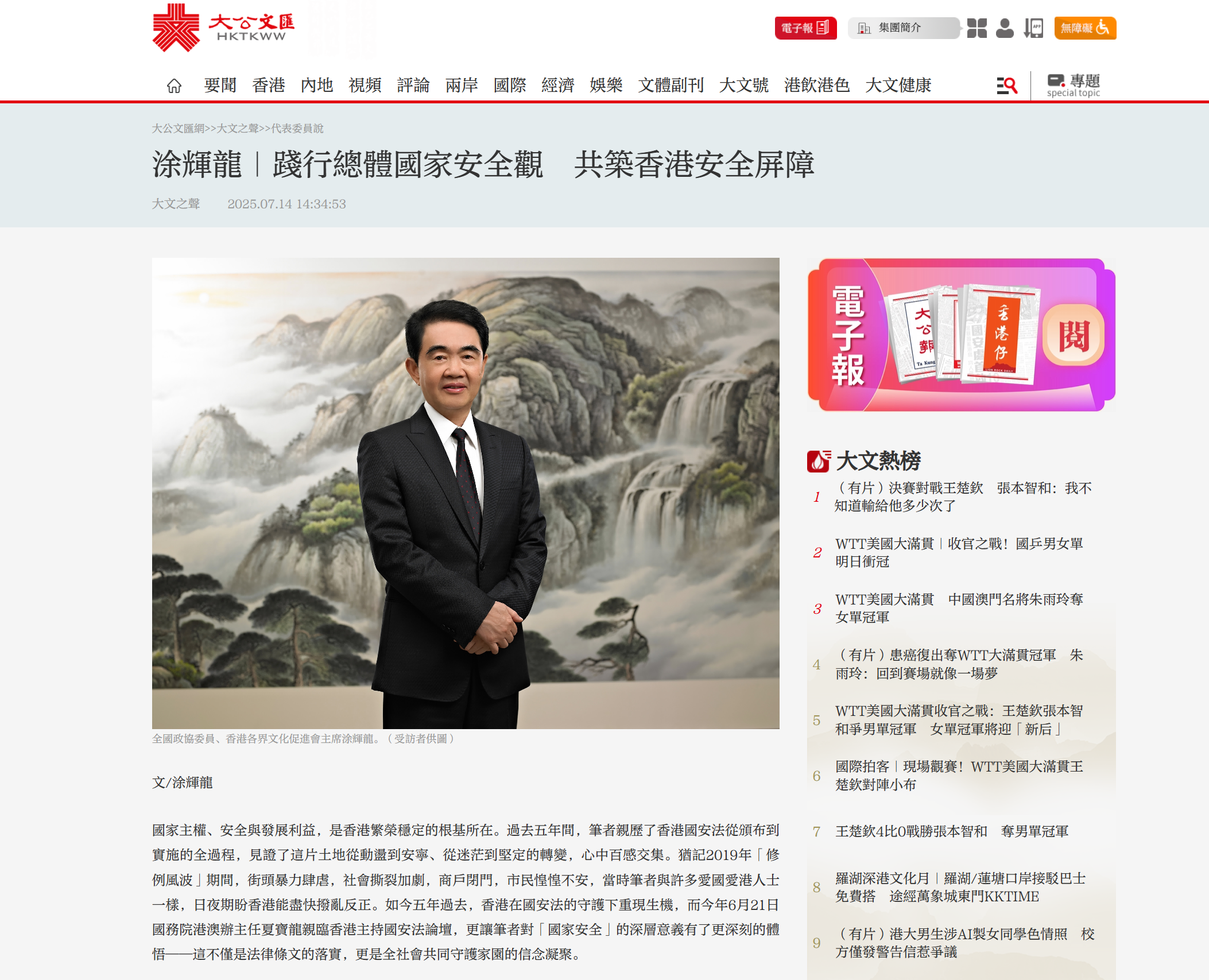 (作者为全国政协委员、香港各界文化促进会主席、海雅集团董事局主席涂辉龙博士·JP)