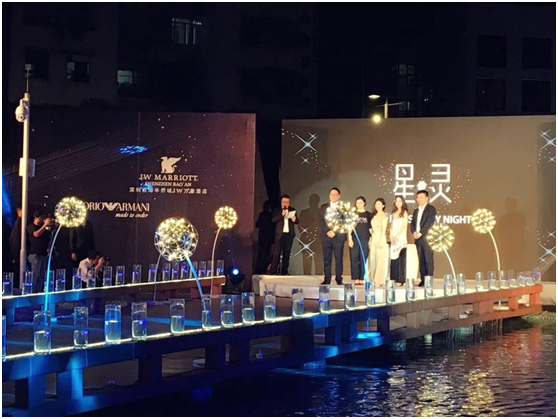 2016年8月6日晚19:00,深圳前海华侨城JW万豪酒店联袂意大利奢侈品牌安普里奥阿玛尼 (Emporio Armani) 、宝安海雅缤纷城及知名婚庆公司好百年,于海雅缤纷城正门广场呈现“星•灵”主题户外夏季高定婚纱首[详情]