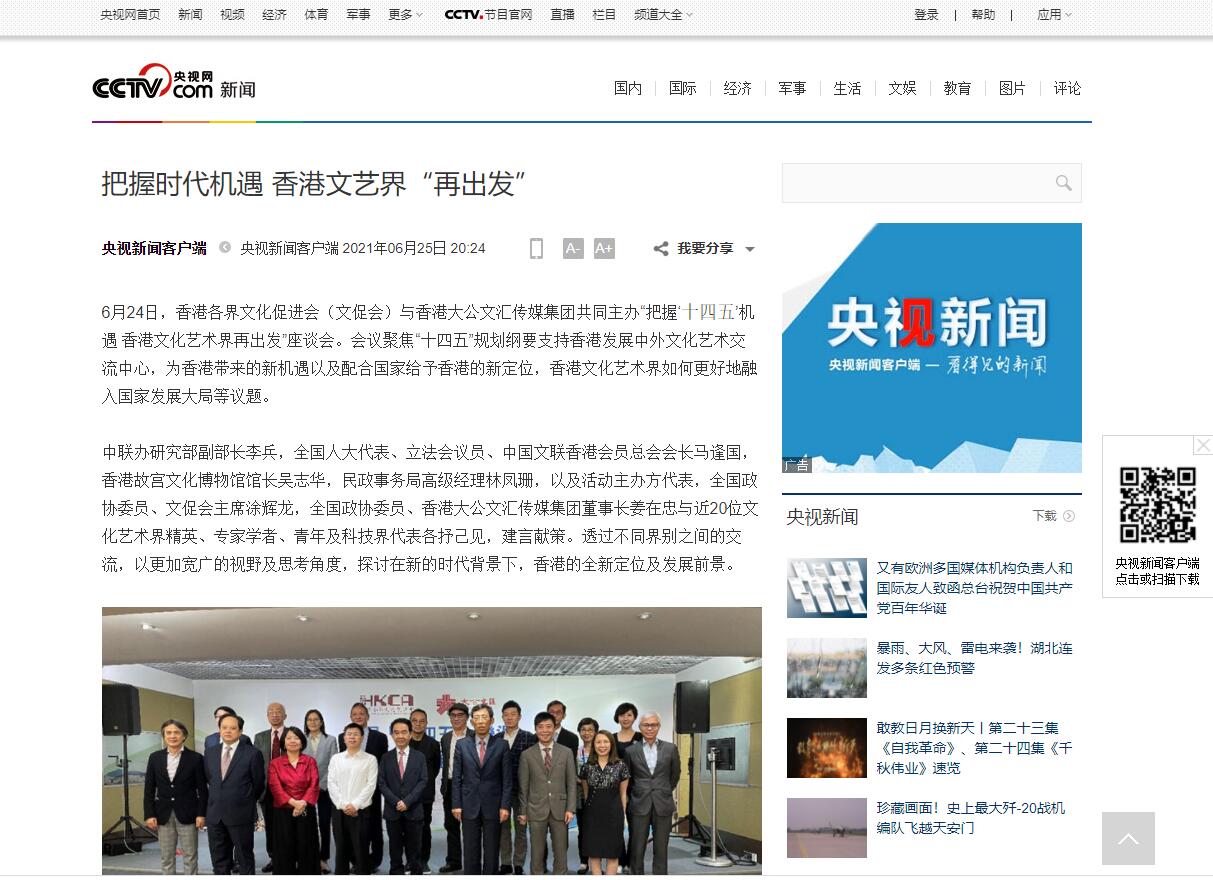 CCTV央视网 | 把握时代机遇 香港文艺界“再出发” 2021-06-26