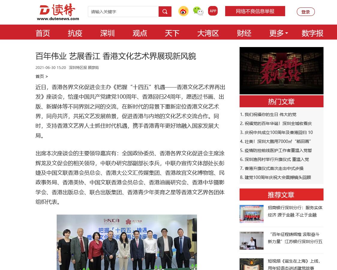 深圳特区报 | 百年伟业 艺展香江 香港文化艺术界展现新 2021-06-30
