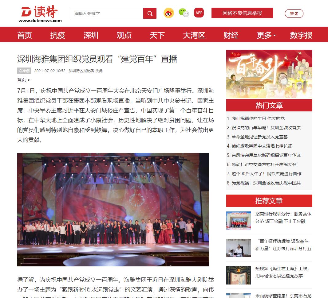 深圳特区报 | 深圳海雅集团组织党员观看“建党百年”直播 2021-07-01