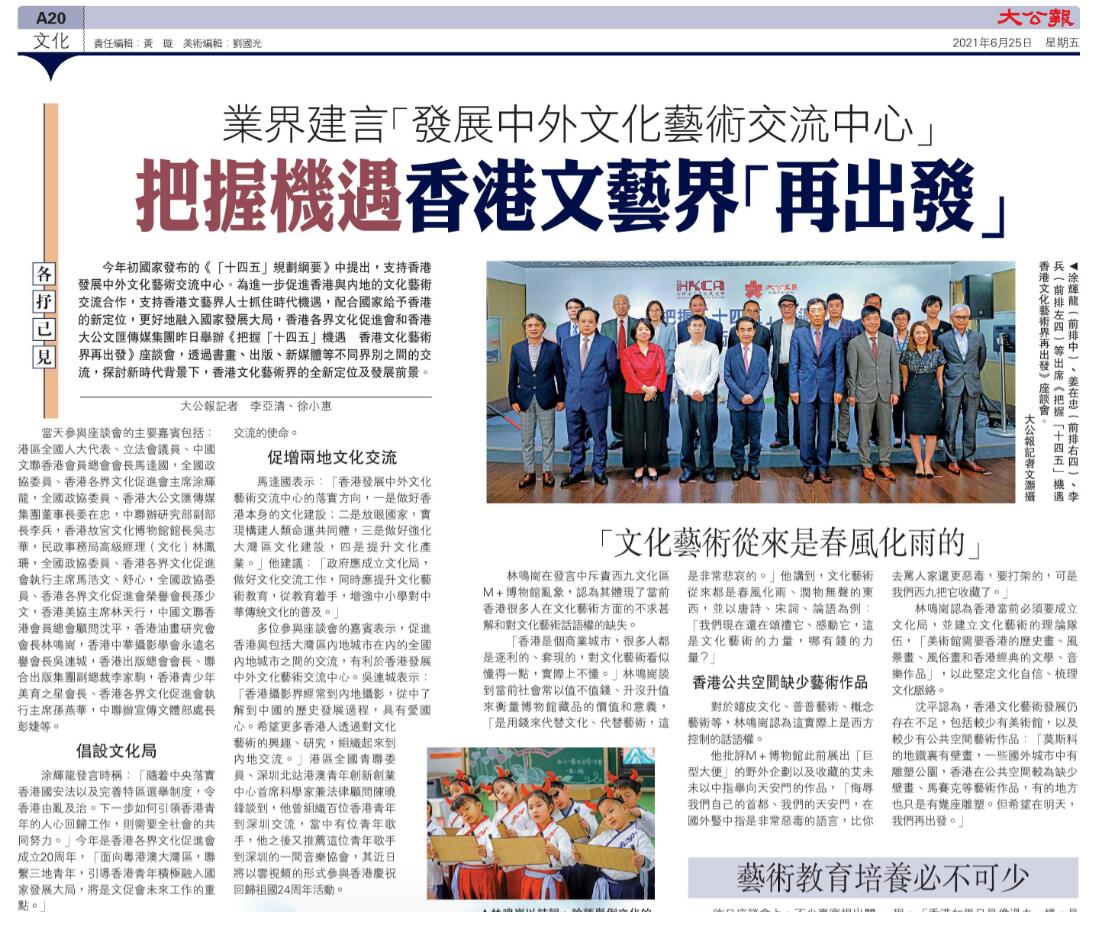 大公报 | 把握機遇香港文藝界再出發 2021-06-25