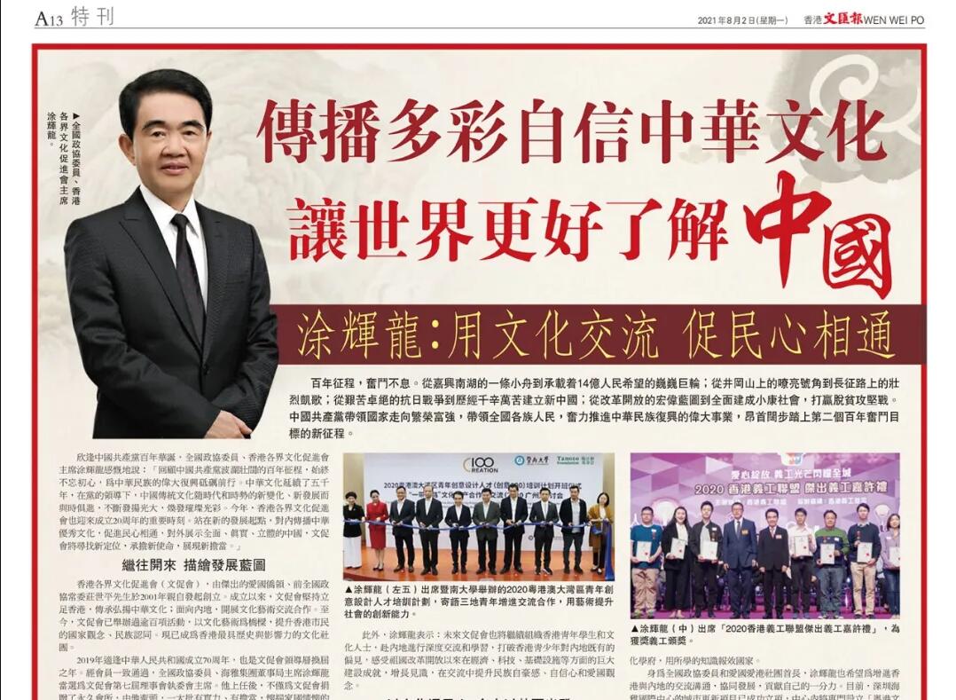 香港文汇报|涂辉龙:用文化交流 促民心相通 2021-08-03