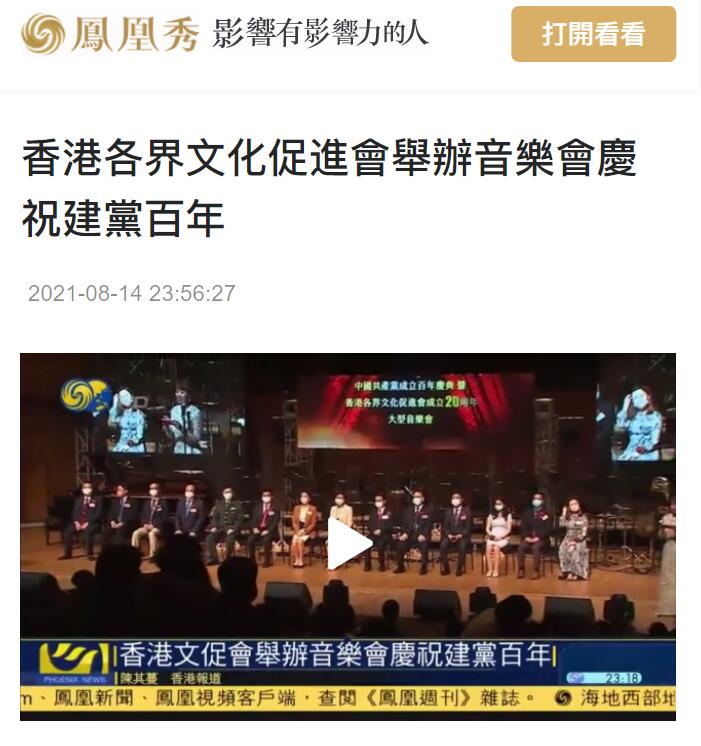 凤凰网 | 香港各界文化促进会举办音乐会庆祝建党百年 2021-08-15