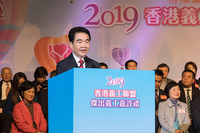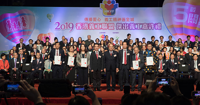 香港特区政府政务司司长张建宗、中央人民政府驻香港特别行政区联络办公室副主任何靖、中华海外联谊会秘书长王萍、香港义工联盟主席谭锦球,香港义工联盟常务副主席、嘉许礼筹备委员会主席陈红天等嘉宾领导出席此次活动。
